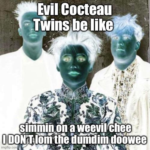 A google search of “cocteau twins meme” returns hundreds of variations on the same theme: I had the pleasure of seeing the cocteau twins live. The reason why nobody can understand the cocteau twins. Is probably because they're singing in scots, not english sudden clarity clarence. The downfall meme, and the meme quieted down, but i just came across a new one where he finds out that the cocteau twins aren't actually .